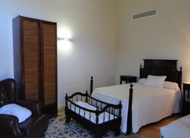 Quarto espaçoso e confortável, antiga “corte das vacas”, com pé direito duplo e instalação sanitária, tem uma cama de “corpo e meio”, uma individual e uma cama extra (também individual). Entra-se pelo antigo eido ou quinteiro.